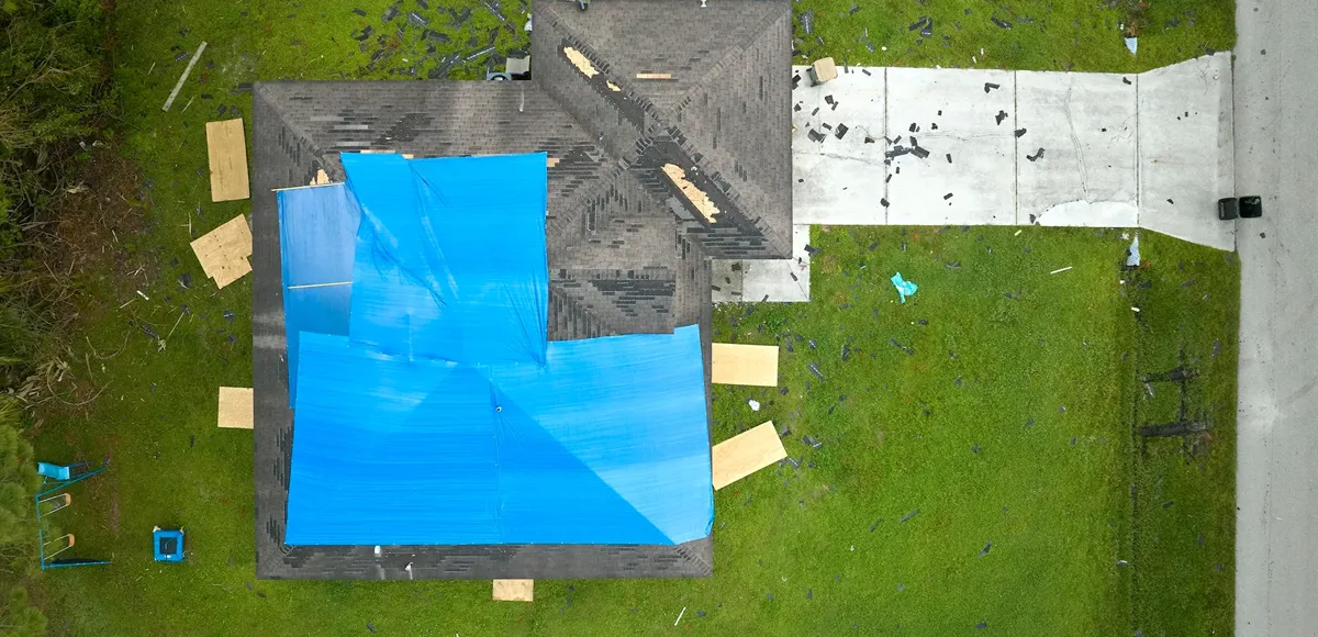 Yes. After stabilizing the roof, we can perform a complete roof inspection to identify hidden storm damage and recommend the best long-term repair or replacement solution.